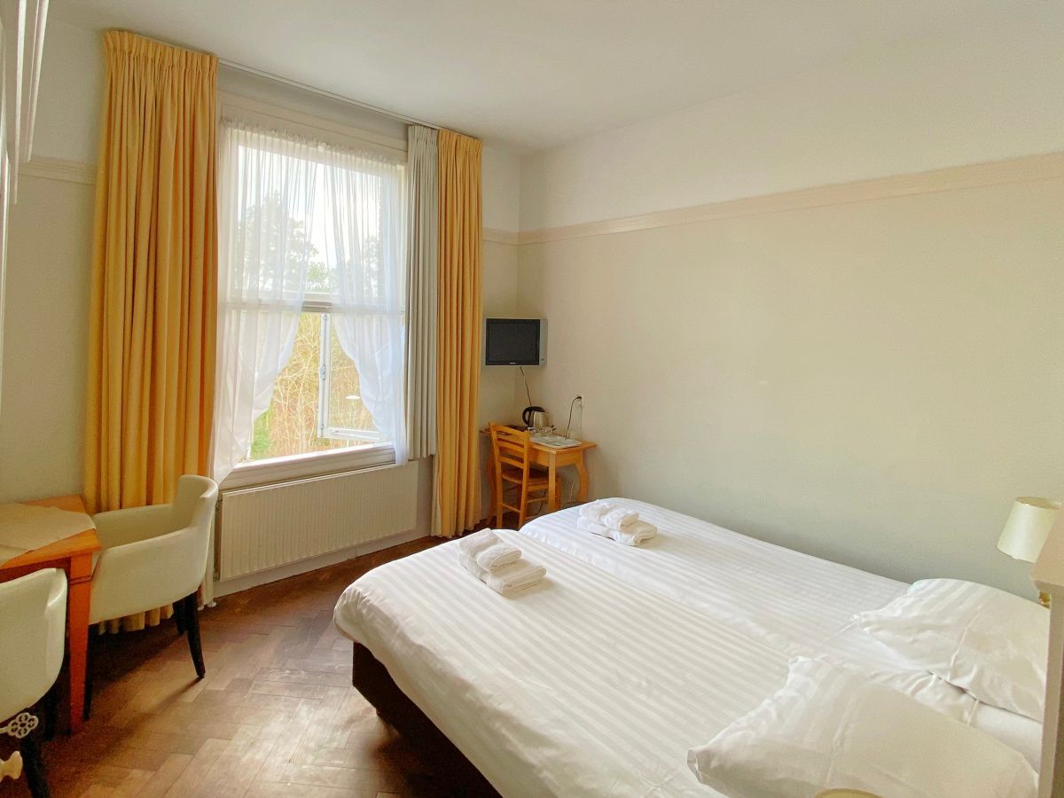 Gemoderniseerde kamer met uitzicht op de duinen. De kamer heeft een authentieke eiken parketvloer. Zitje met twee stoelen, kluisje aanwezig.