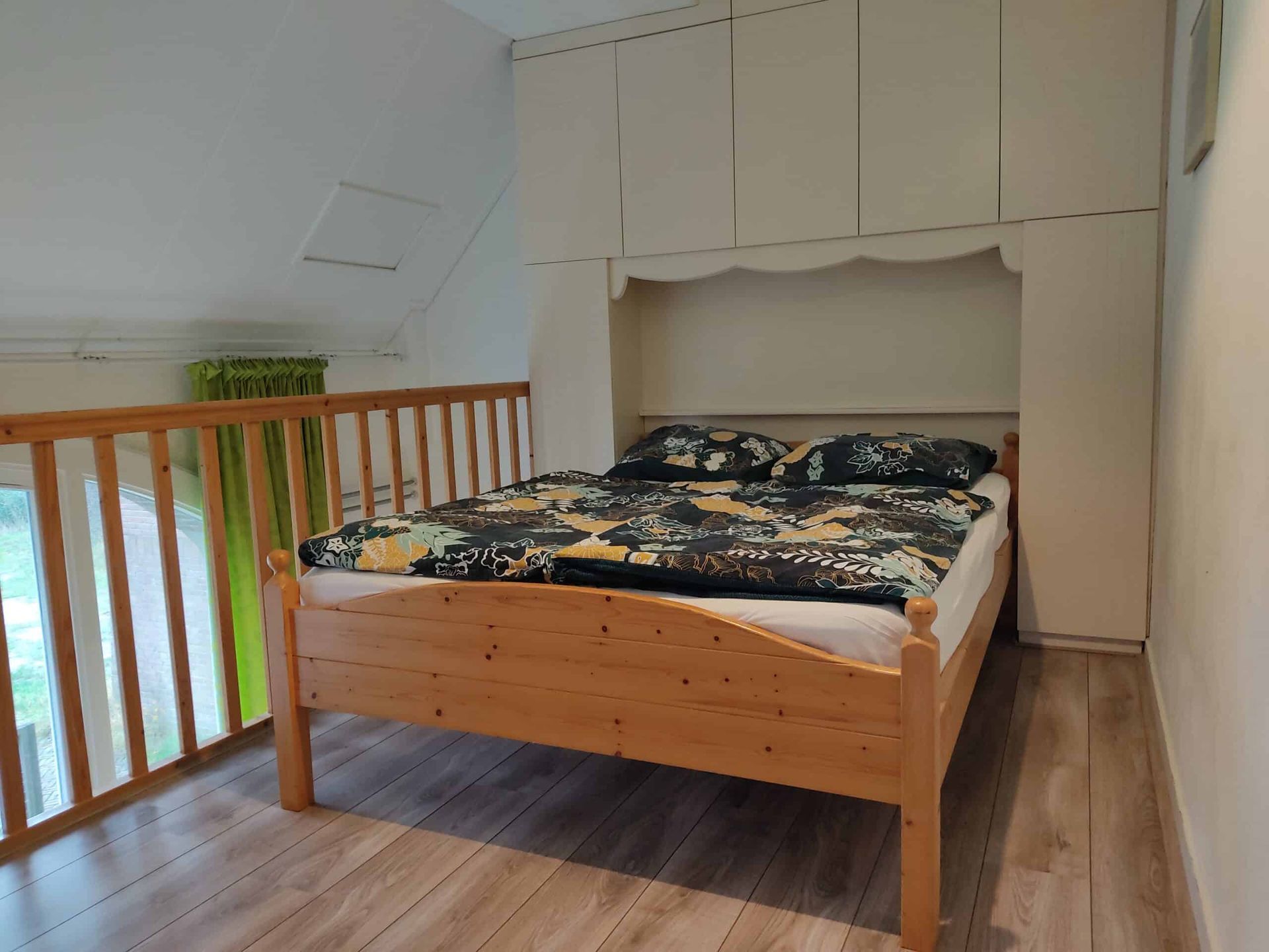 Practical apartment for 3 people with a ground-floor entrance. There is a small living room with a kitchenette, and a mezzanine with a 1.40 m wide double bed. Next to the living room is a single bedroom. The bathroom has a shower, sink, and washing machine. The toilet is separate. West-facing terrace, near the playground. Ideal for 2 adults and 1 child.